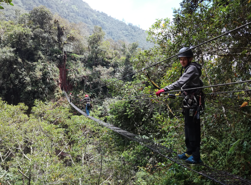 Le trajet était composé de tyroliennes , de ponts suspendus, de skate line et d’échelles à Via ferrata.