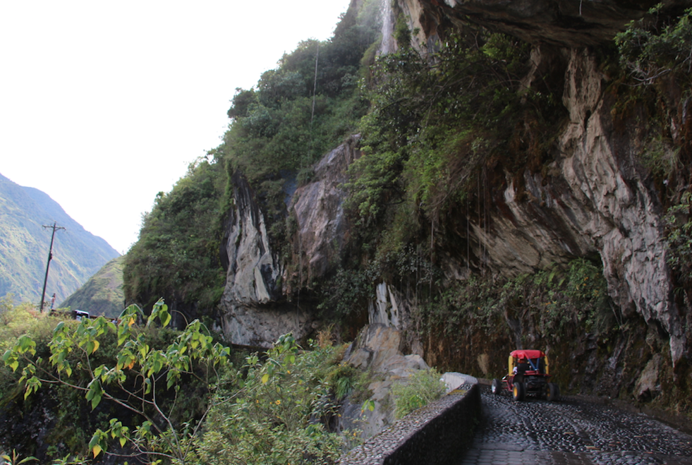 C’est une petite ville au pied du volcan Tungurahua (5 016 m). De hauts sommets verdoyants l’entourent .