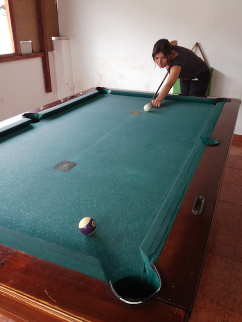 Les enfants quittent momentanément les écrans pour se faire une petite partie de ping pong et moi je m’amuse à taquiner la boule (de billard !!).